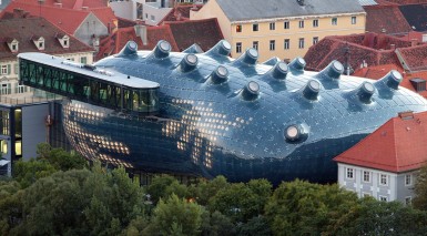 Beautiful art museum in Graz, stupid websites for same.   The arts museum in Graz, Austria, is a really cool-looking building. Unfortunately, all the websites for it focus on breaking usbaility in order to prevent deep-linking or to present some kind of Flash-based, non-bookmarkable "user experience." So go look at the press photos, but ignore all the incredibly stupid copyright warnings that are apparently intended to scare off people who might actually take an interest in the site, and just check out the building itself. Link (Thanks, Machaus!)  [Boing Boing Blog]
